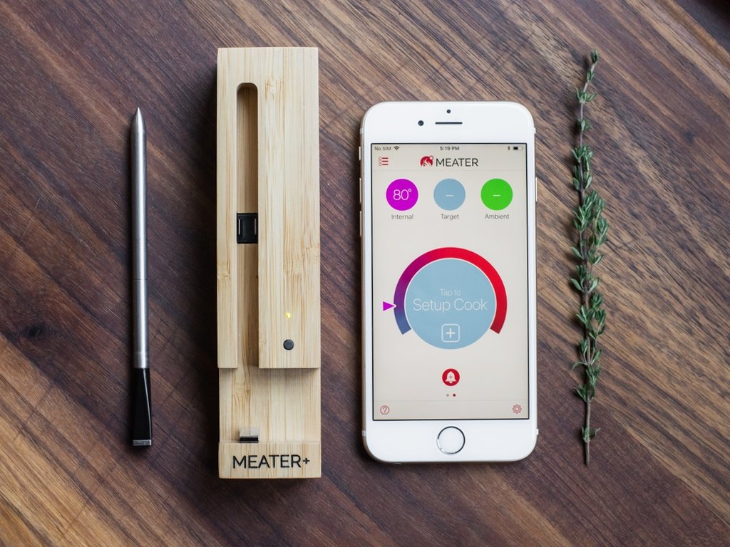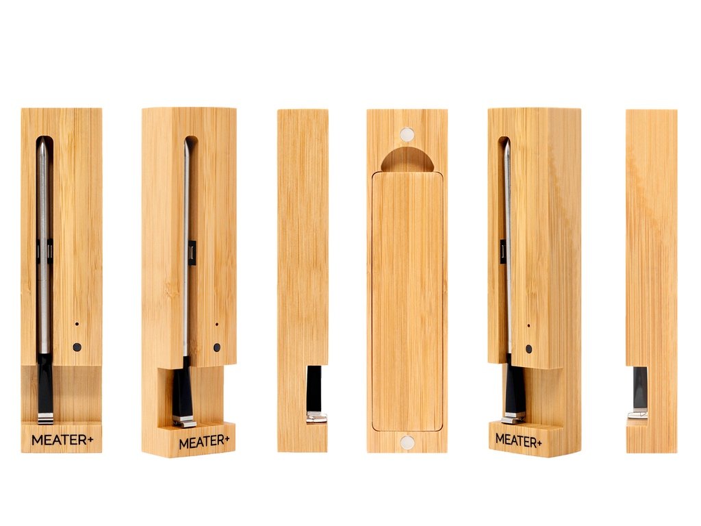 Teploměr Meater Plus+ je balen v dřevěné dárkové krabičce, který slouží zároveň jako dobíjecí stanice, a jako dárek zaručeně potěší kohokoliv, ať se jedná o profesionálního kuchaře, maminku v domácnosti nebo tatínka. Teploměr najde uplatnění v každé kuchyni.
